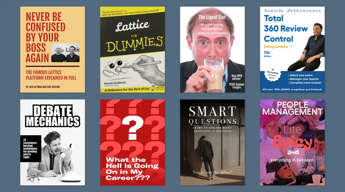 Friday morning Design Coold❄️wn @LatticeHQ. We looked at some old books I found on my mother's bookshelf and reimagined them with a few strict constraints. Bad ideas only. Max silly.